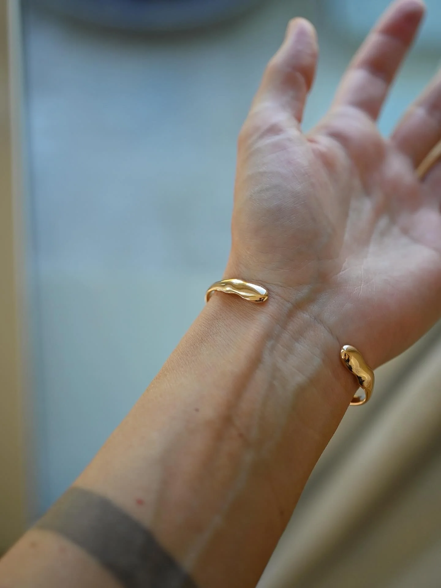 A sculptural piece that melts into the wrist like sunlight on skin. Handmade in 1973 by Swedish goldsmith M. Johansson, this solid 18K gold treasure was specially commissioned, and you can feel that intention in every gentle curve.