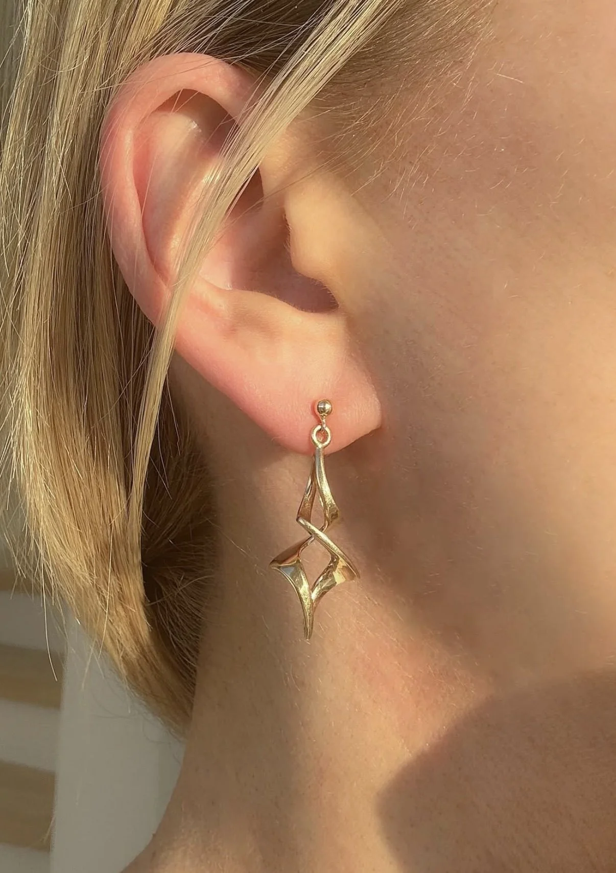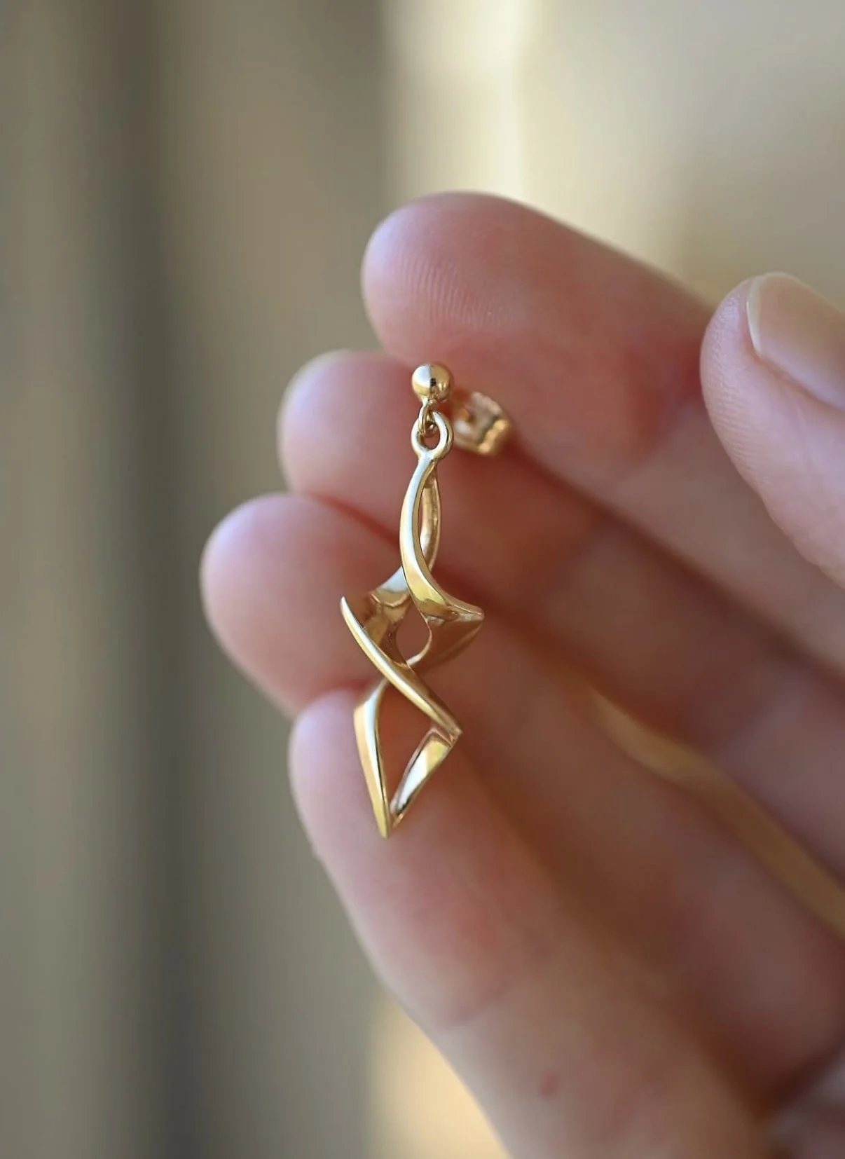 A sculptural dream in gold… these vintage 14k beauties are a pair of bold, dimensional stud earrings with a playful twist and fluid shape that moves beautifully with the light.