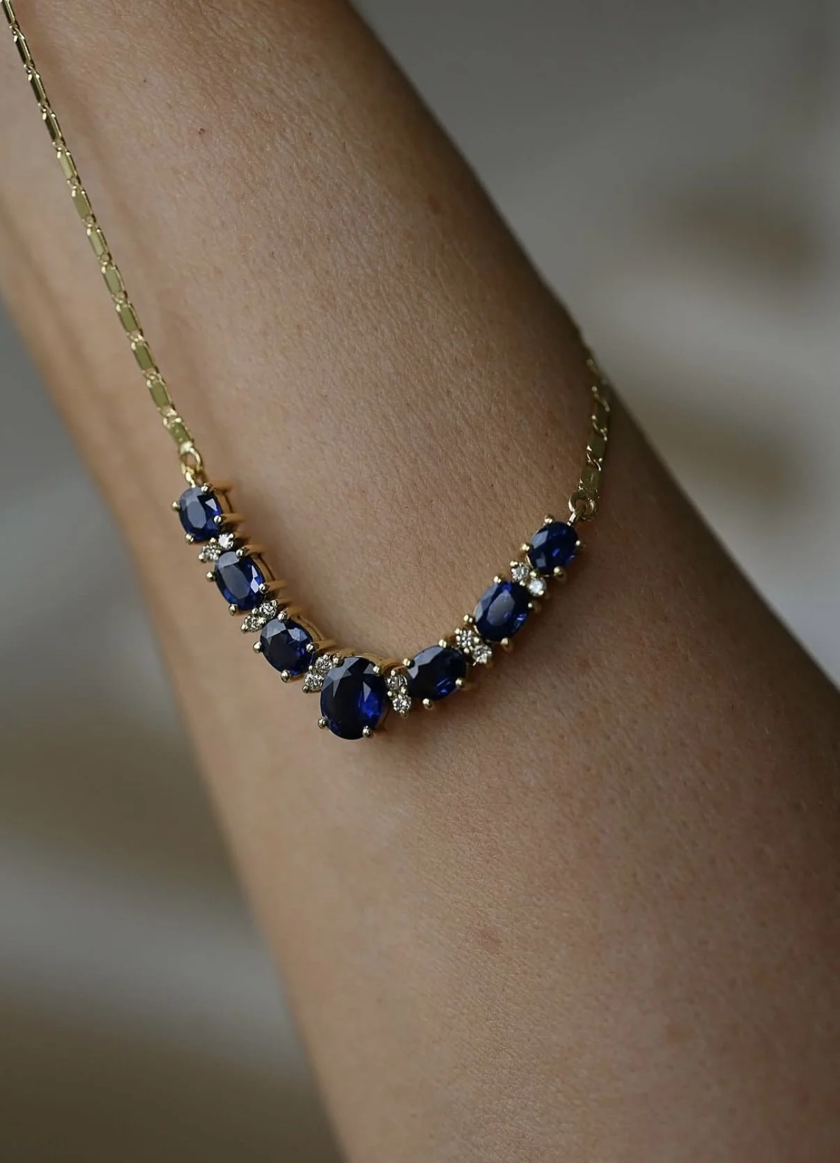 New in! Stunning Sapphire x Diamond Necklace 18K Gold