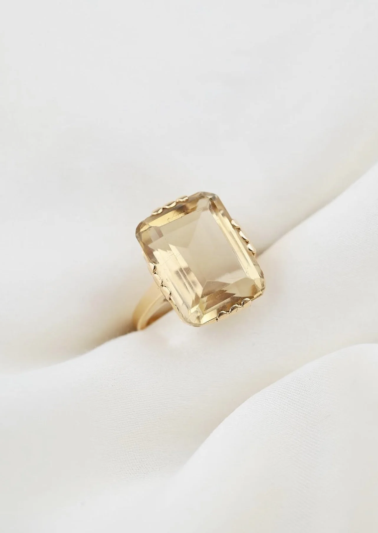 Luminous Vintage Citrine Cocktail Ring 18K Gold 1957