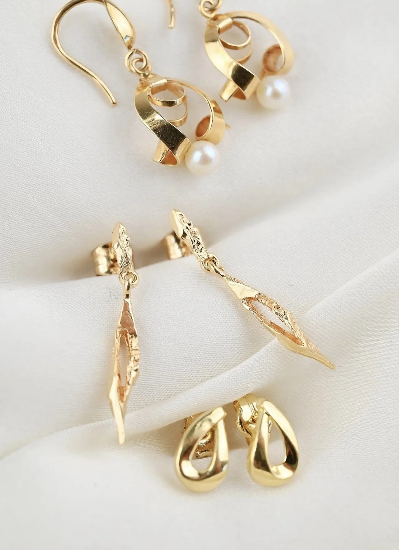 New in! Vintage 18k Gold Sculptural Drop Earrings Sweden 1960s