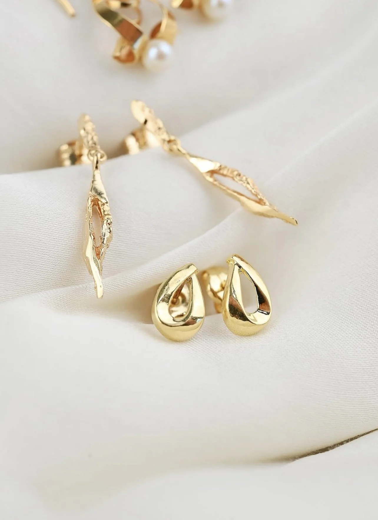 New in! 14k Gold Sculptural Teardrop Studs Sweden 1980