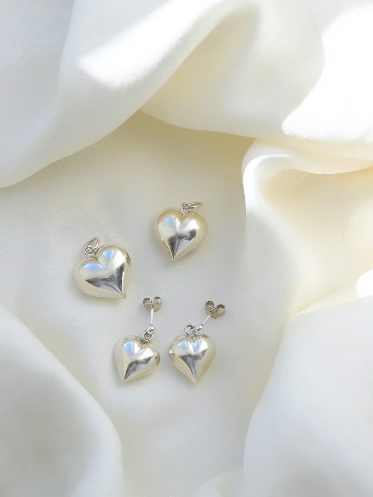 These stunning puffed heart pieces are all crafted in solid sterling silver and sold separately so you can mix, match or collect. The hearts are voluminous and softly rounded with that perfect high-shine finish that makes them feel like silver candy.
