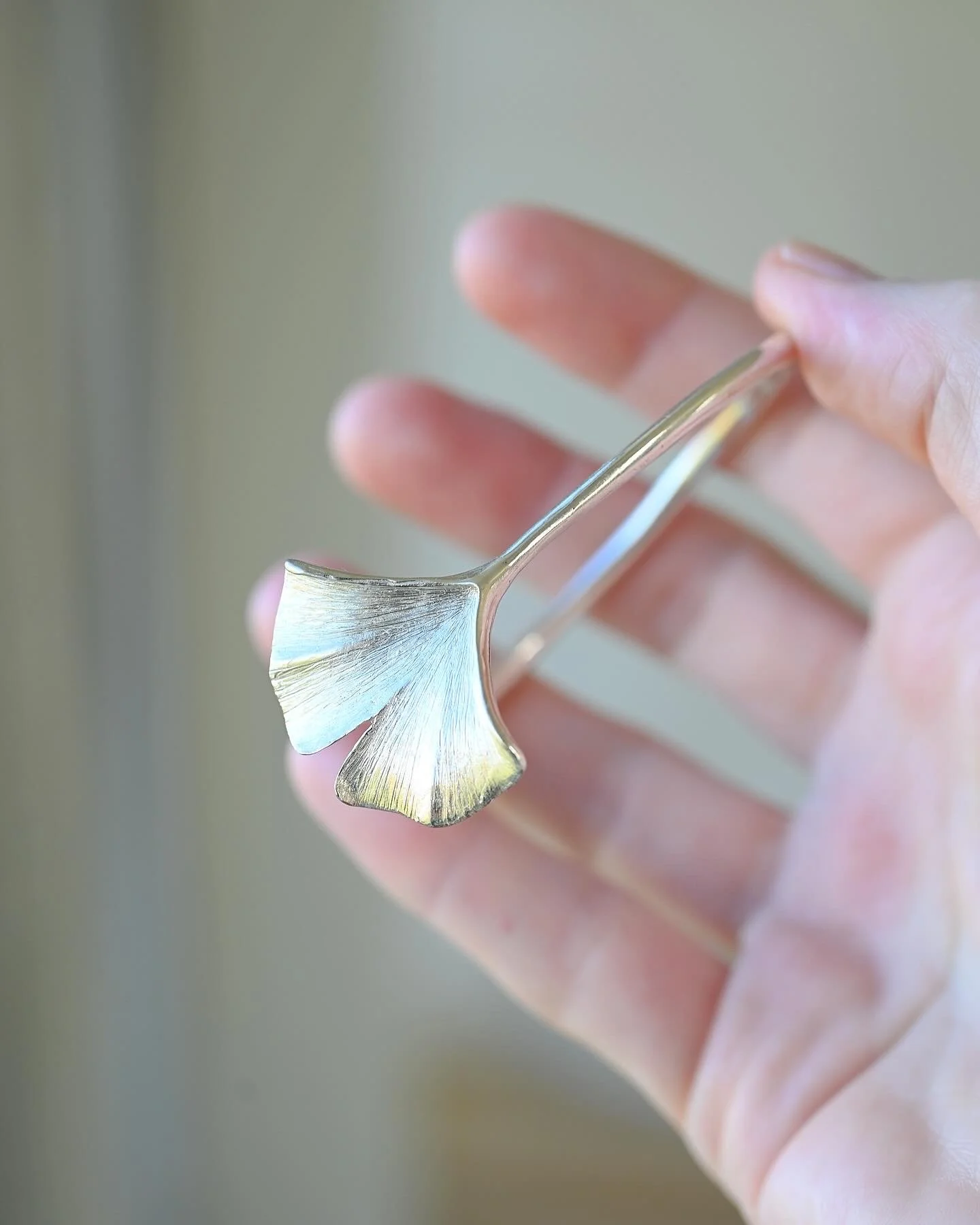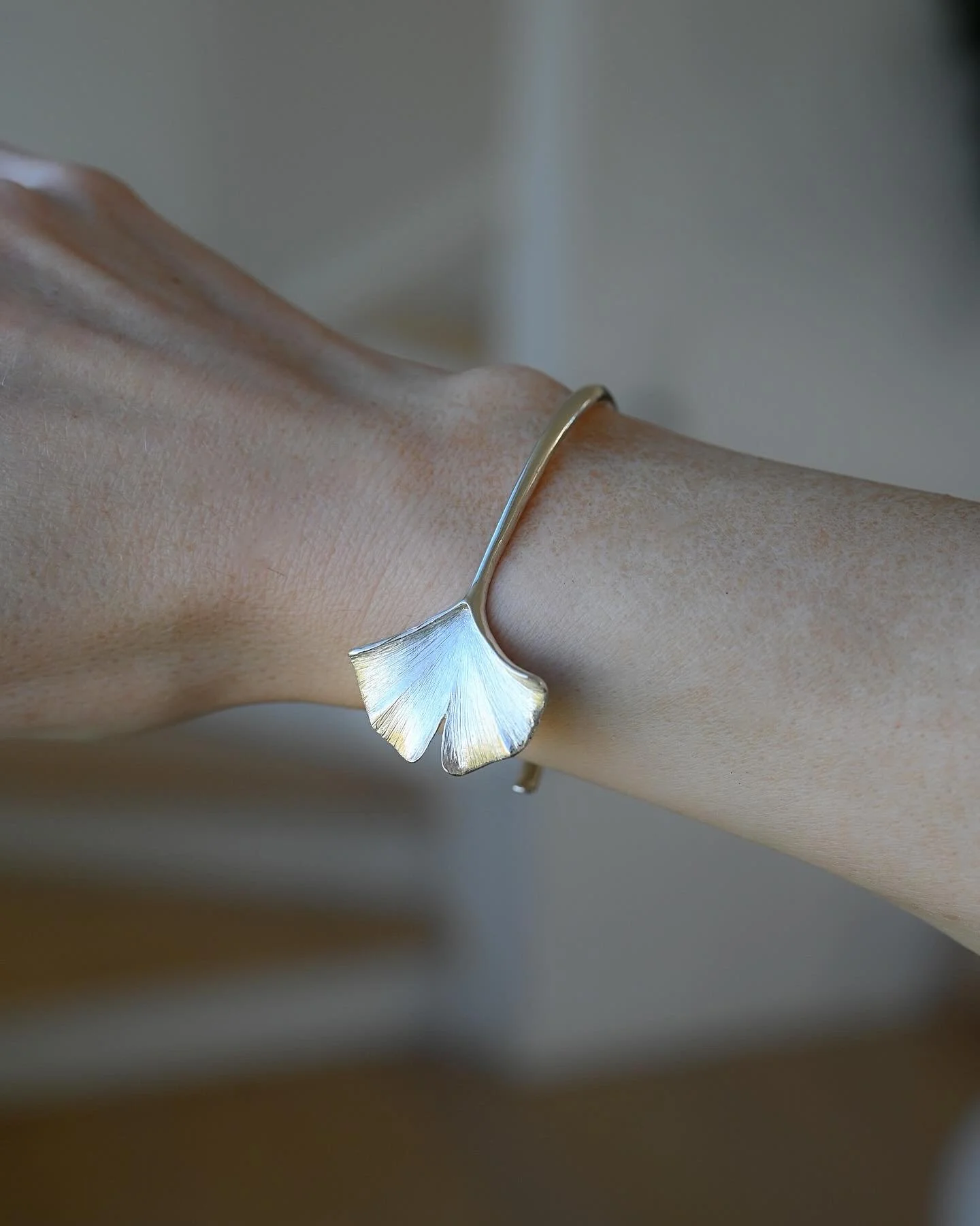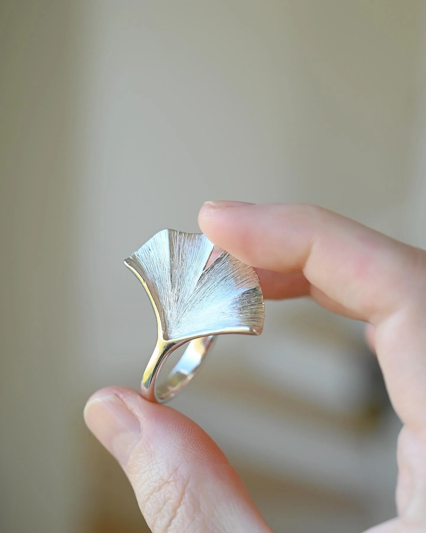 This trio of sculptural ginkgo pieces has completely stolen my heart; a cuff, a ring, and earrings, all in sterling silver, crafted with such graceful intention that they feel more like wearable poetry than accessories.