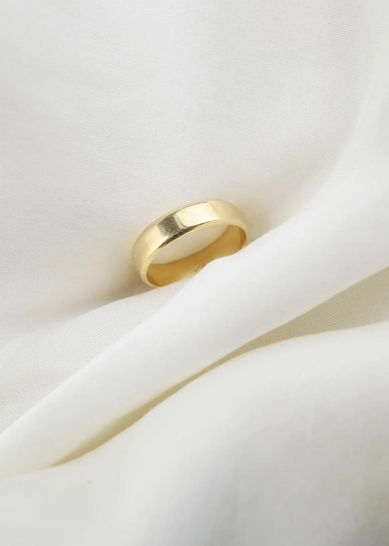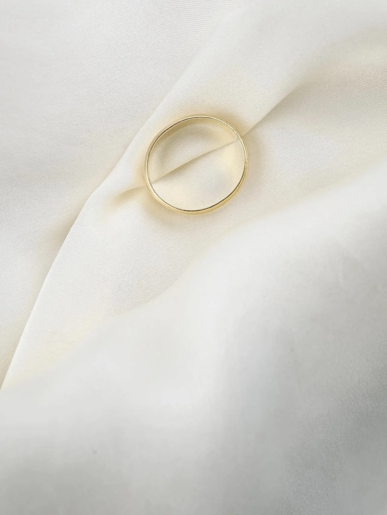 Crafted in 14k gold, she has that soft, warm glow that only gets better with wear. The shape is ever so slightly oval, giving her a gentle, organic feel on the hand that makes her sit beautifully and comfortably, almost like she’s been yours forever. It’s a subtle detail, but one that makes all the difference.