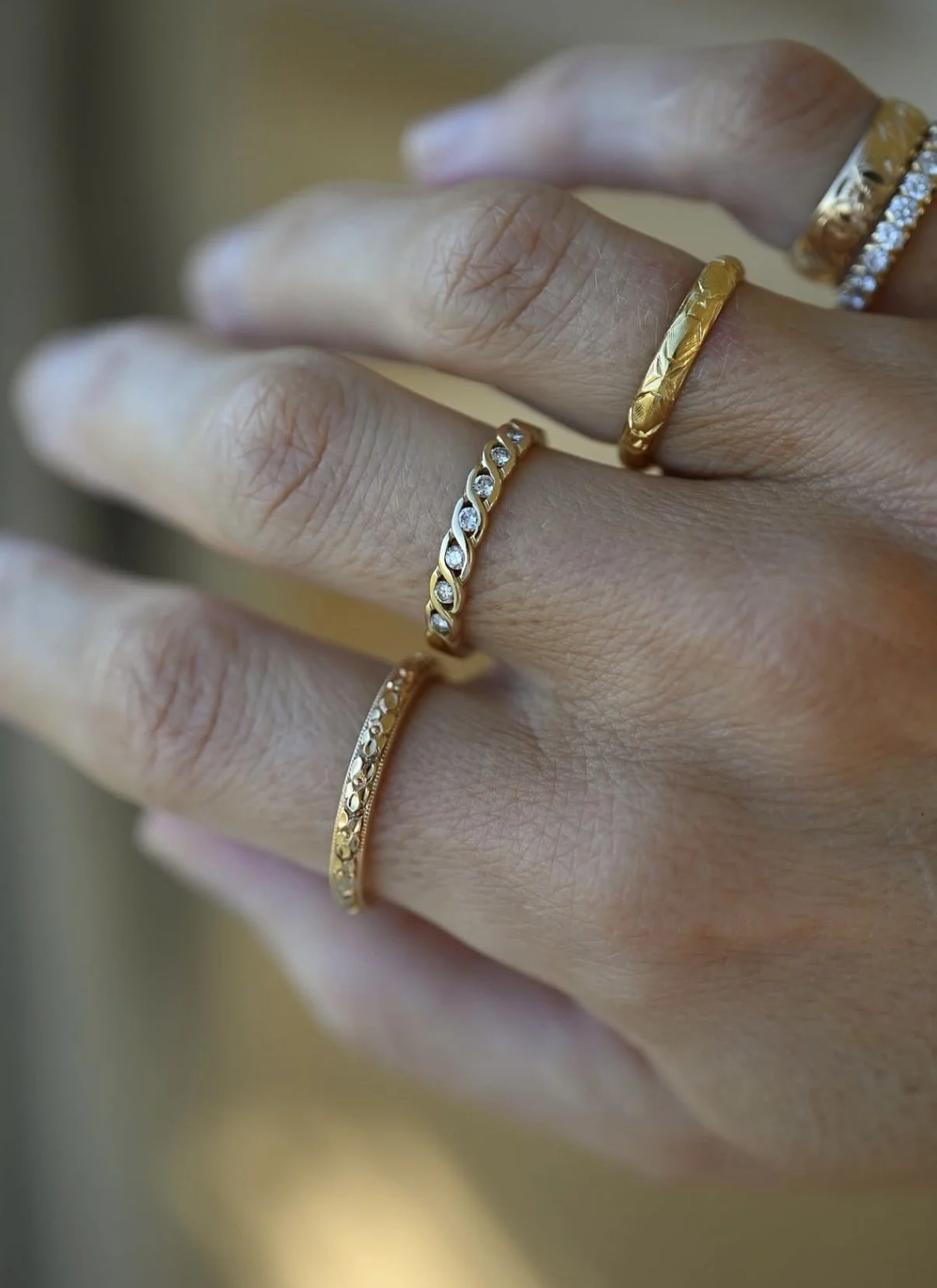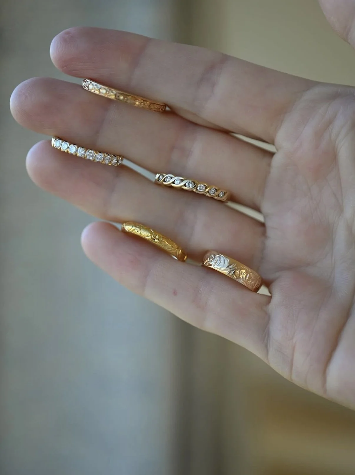 This one stacks like a dream and pairs beautifully with florals, hand engraving, or bold textures.