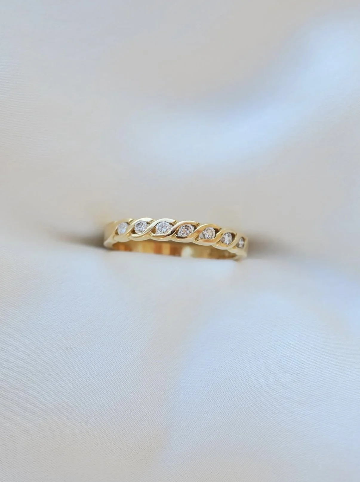 New in! Playful Specidl Channel Set Diamond Twist Band 18K Gold