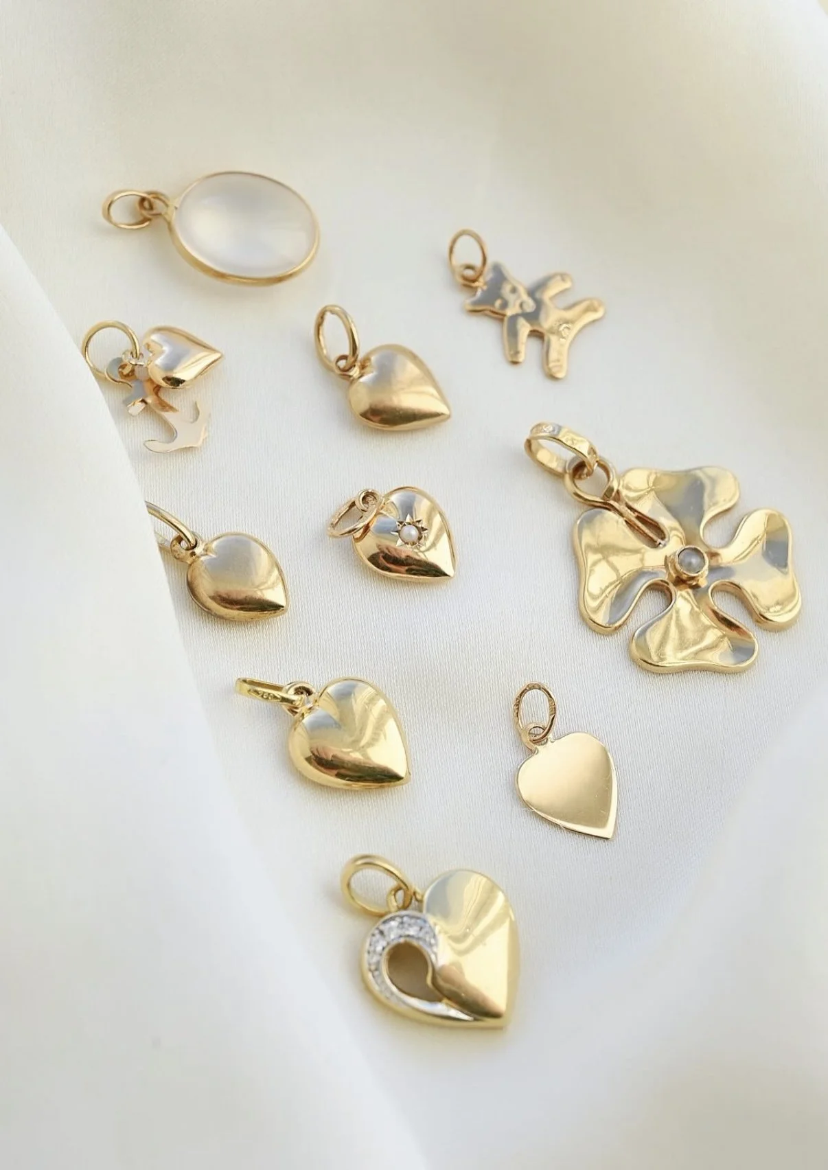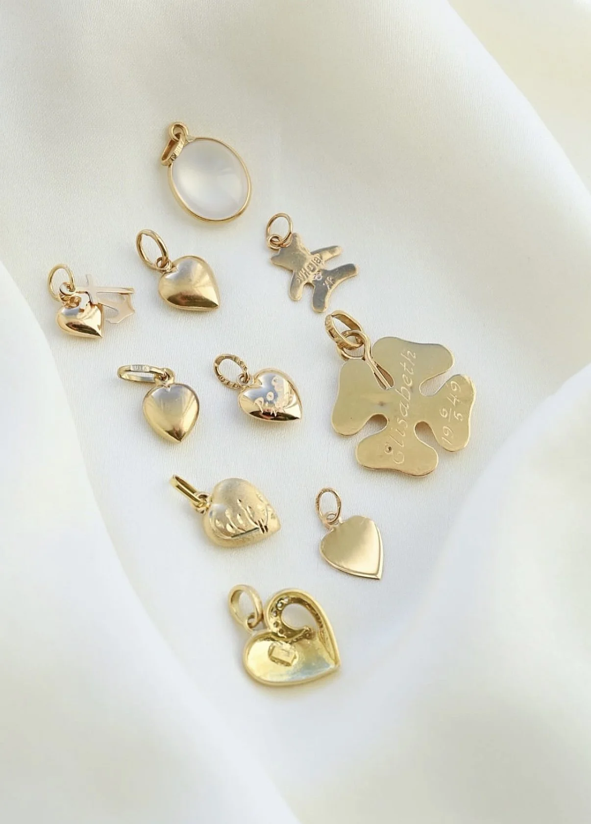 A curated group of vintage 18k gold charms, each one full of character and emotion, ready to be worn alone or layered into your personal story. Every single piece is solid 18k and sold individually, so you can pick the one (or few) that speak to your heart.